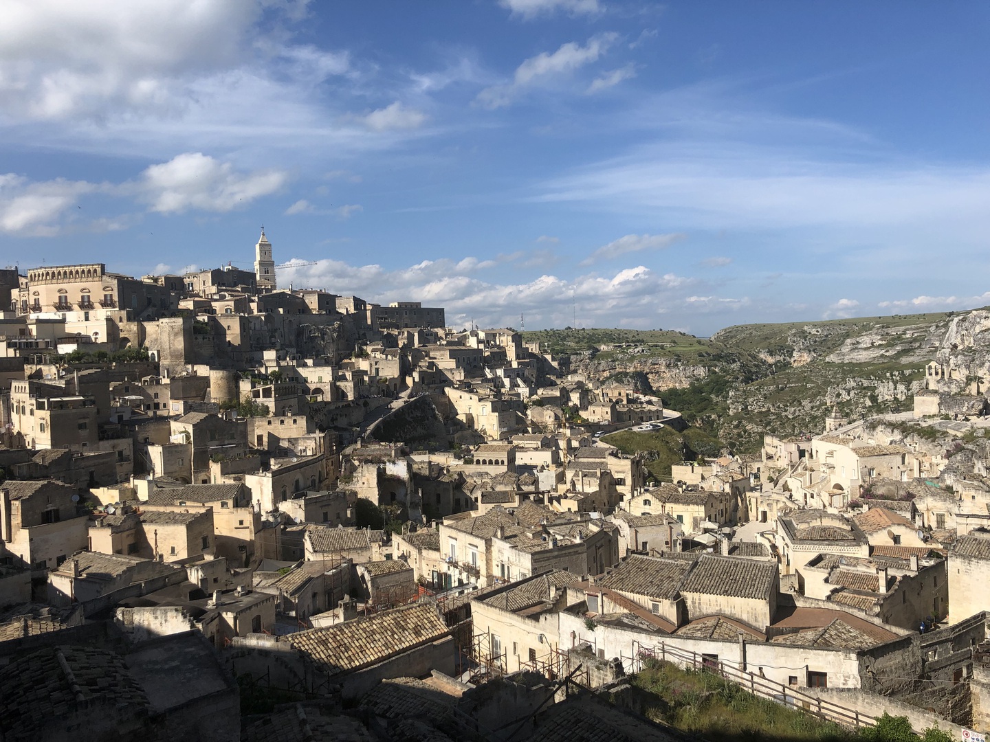 マテーラは、イタリア南部に位置する町で渓谷の斜面の岩肌を掘って造られたサッシ(サッシとは岩を意味するイタリア語サッソの複数形)と呼ばれる洞窟住居えが約3000から4000あり、何層にも重なって渓谷を埋め尽くす壮観な景色が広がります。このマテーラの歴史は古く、この地に人類が住み着いたのは約7000年前と言われています。