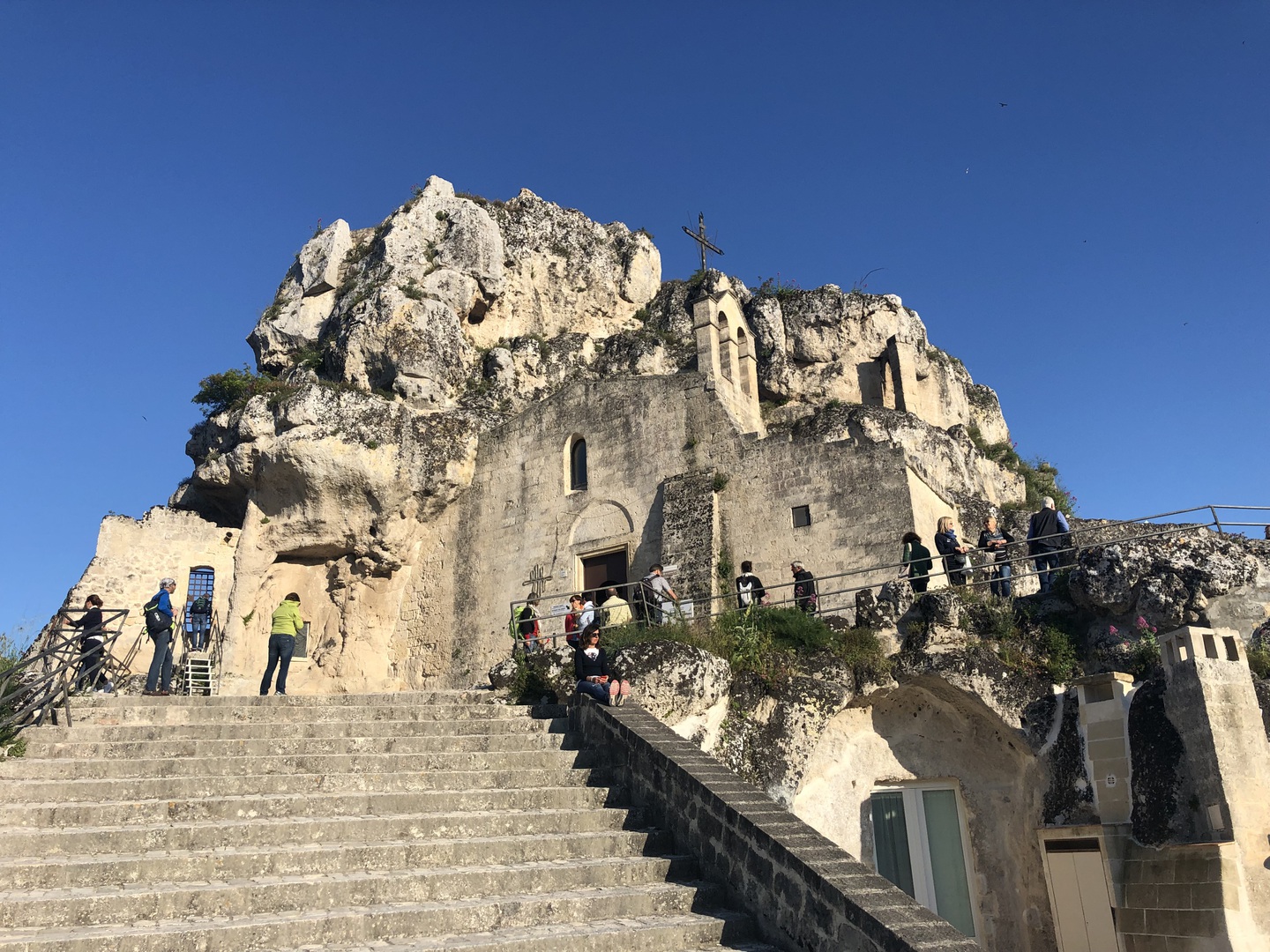 8世紀以降ギリシャから修道僧たちがイスラム教徒の迫害を逃れて、ここマテーラ の洞窟に隠れ住み多くの洞窟教会を建設した。トルコ、スペインにも洞窟住居があるが、マテーラの規模は世界一です。