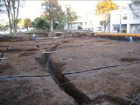 ここでは建替え工事に際し発掘調査を行っており、縄文時代の住居跡などを調査していました。