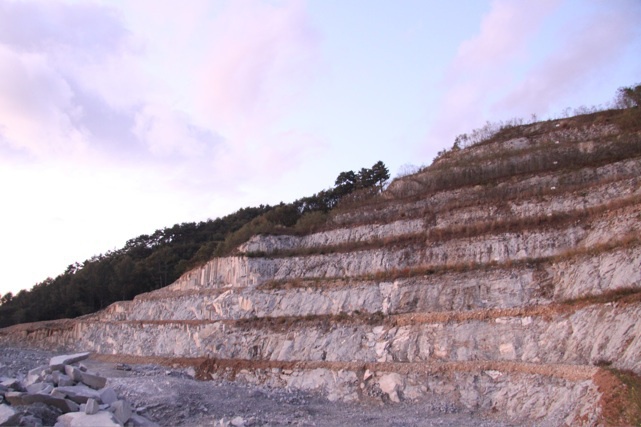 この採石場ではコンクリートやアスファルトなどに使用する石材を採掘しています。この場所で採取された砕石が、私たちの住む家の基礎、道路や橋など様々な部分に活用されています。