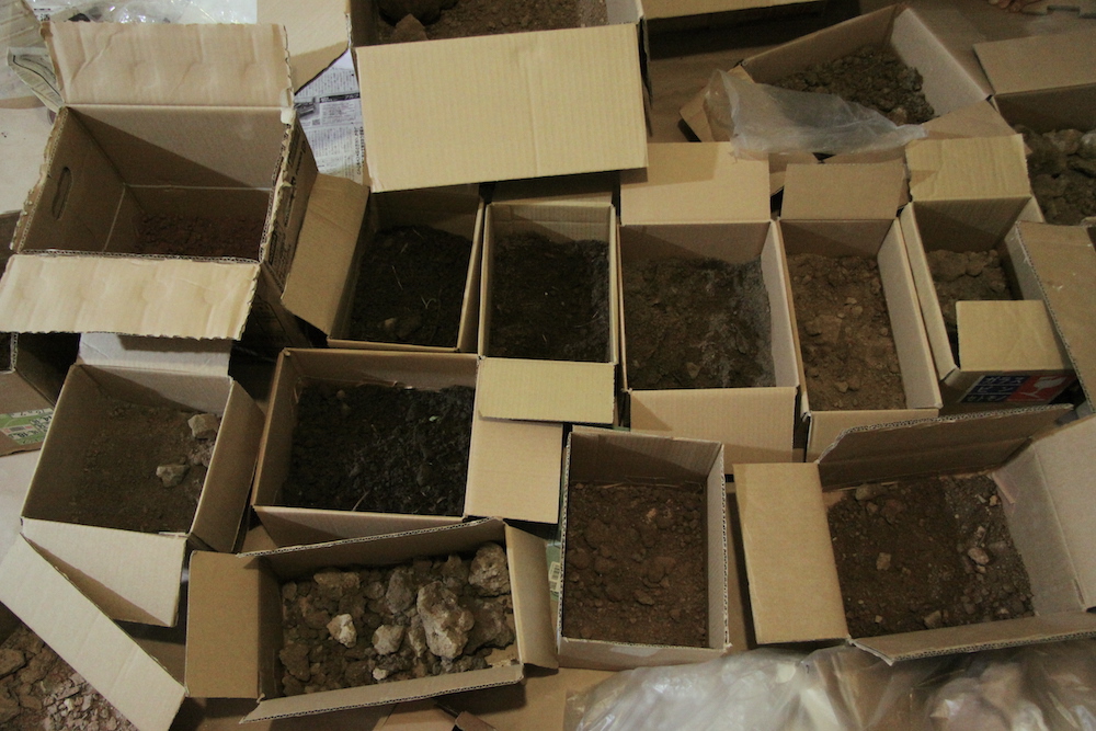 各地の作業現場の方々のご厚意のおかげもあり、色や形、土質の異なる多種多様な土・砂を採取することができました。